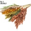 Combineer ze makkelijk met andere droogbloemen zoals gedroogde rozen, papaver, brem (broom), ruscus of Helichrysum voor extra kleur, structuur en contrast — of kies juist voor zijde bloemen als je een onderhoudsarme, altijd-frisse look wilt. Door hun duurzame karakter en levendige tinten zijn deze pampaspluimen ideaal om je huis op te vrolijken of om een persoonlijk, blijvend cadeau samen te stellen zonder gedoe.