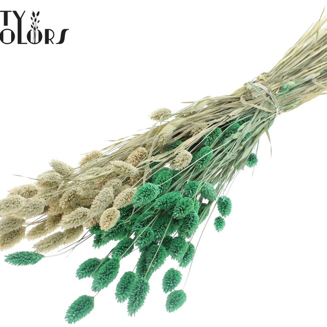 Zachte, tweekleurige Phalaris in een subtiele frosted mintgroen tint die meteen sfeer geeft aan elke kamer. Dit kanariegras heeft een natuurlijke, matte uitstraling en is ongeveer 60 cm lang met een gewicht van circa 220 gram per bos, waardoor het stevig en vol oogt in hoge vazen of als losse strook in een droogboeket. Door de rustige kleuren en het luchtige silhouet werkt het fantastisch solo of gecombineerd met andere droogbloemen zoals Helichrysum, ruscus of bezemkruid voor een speels, natuurlijk geheel.