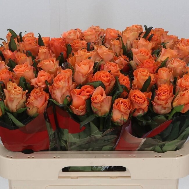 Vrolijke oranje rozen van ongeveer 60 cm, geleverd per bos van 20 — perfect als je huis een warm, levendig accent kan gebruiken. De intense "On Fire" tint springt direct in het oog en zorgt voor een zonnige sfeer op de eettafel of in de hal; dankzij stevige stelen en volle knoppen blijven deze verse bloemen lang fris en indrukwekkend. Deze rozen zitten in de collectie Verse bloemen en Verse bloemen P - Z en horen bij Rosa (Roos).