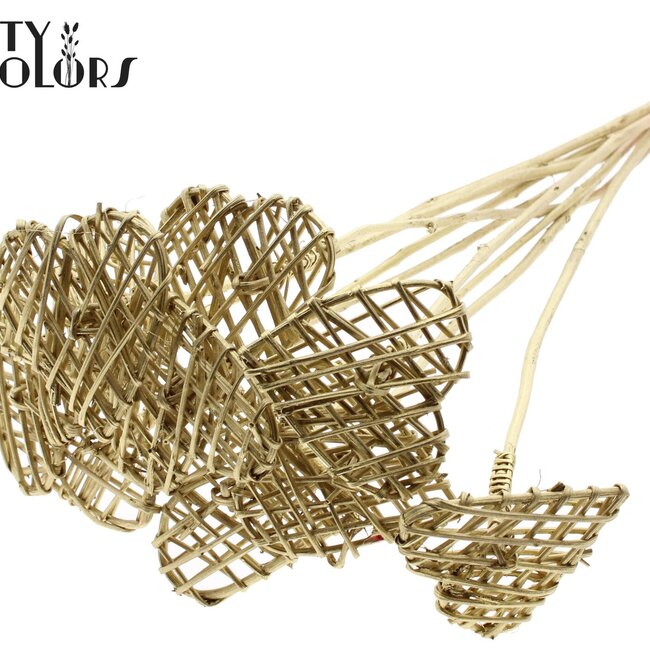 Rotan Lata Hart op stok | Kleur: Goudkleurig | Platte Bijsteker | Lengte ± 50 centimeter | 10 bijstekers per bos | Per bos