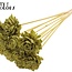 Een lief, lichtgewicht Shola houten dahliaatje op stok in een warme olijfgroene tint: de bloem heeft een diameter van ongeveer 6 centimeter en de bijsteker is zo'n ±50 centimeter lang, geleverd per bos van 10 bijstekers. Deze Shola Dahlia bijstekers van QC vallen op door hun natuurlijke, bijna handgemaakte uitstraling binnen de wereld van Kunstbloemen en Shola Flowers; je vindt soortgelijke items in onze Dhaliya collectie. Ze zijn onderhoudsvriendelijk en blijven lang mooi zonder water of onderhoud, hebben levendige kleur en textuur, en voegen zonder gedoe een subtiele, duurzame elegance toe aan vazen, boeketten of als stijlvolle touch in huis—perfect als blijvend, onderhoudsarm cadeau of simpele sfeermaker in je interieur.