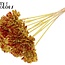 Deze Shola houten dahlia brengt direct warmte en karakter in huis met z'n speelse gespetterde geel-rode kleur en natuurlijke textuur. Elke bloem heeft een bloemdiameter van ongeveer 6 centimeter en zit op een lange bijsteker van ±50 centimeter, perfect om in hoge vazen of gemengde boeketten te zetten; per bos ontvang je 10 bijstekers. Als liefhebber van kunstbloemen, Shola Flowers of specifiek de Dhaliya collectie waardeer je de realistische uitstraling en het handgemaakte gevoel dat deze dahlia’s geven.