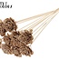 Deze fijne Shola Dahlia bijsteker combineert natuurlijke charme met onderhoudsarm gemak: een houten kern met zachte wasdahlia in warm beige, bloemdiameter ca. 6 centimeter en een bijsteker van ongeveer 50 centimeter — perfect om diepte en structuur aan een vaas of boeket toe te voegen. Je krijgt 10 bijstekers per bos, allemaal in dezelfde elegante kleur en vorm, ideaal als je een samenhangende, rustieke look wilt zonder gedoe met water of verwelken.