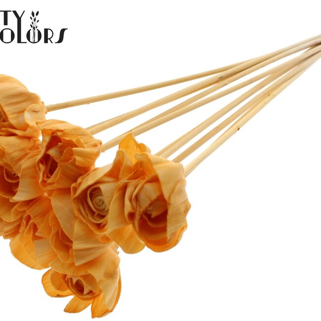 Een subtiele, handgemaakte Shola-roos in warm abrikoos die meteen sfeer toevoegt aan elke ruimte. De zachte, houtachtige petalen voelen natuurlijk aan en behouden hun kleur en vorm zonder water of onderhoud, waardoor ze perfect zijn voor vaasjes, tafeldecoraties of als verfijnd detail in een boeket. Deze kunstbloem heeft een rustige, boho-achtige uitstraling die zowel modern als romantisch oogt.