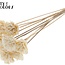 Een stijlvolle, naturel-witte Shola bloem op een slanke houten stok die meteen warmte en textuur toevoegt aan je interieur. De bloem heeft een diameter van circa 6 centimeter en de stok is ongeveer 50 centimeter lang, wat zorgt voor een elegante, luchtige uitstraling in vaasjes of als subtiel accent tussen andere kunstbloemen. Per bos ontvang je 10 bijstekers, perfect om snel een speels maar verzorgd boeket samen te stellen.