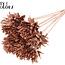 Praktisch en precies: de bloem heeft een diameter van ongeveer 6 centimeter en zit op een bijsteker van circa 50 centimeter, waardoor hij mooi boven andere bloemen uitsteekt of solo kan pronken. Je krijgt 10 bijstekers per bos, ideaal om te verspreiden over meerdere vazen of te gebruiken in een rustieke krans; de koperkleurige toon en de duurzame Slice Pine-structuur zorgen dat ze lang fris en stijlvol blijven zonder te verwelken.