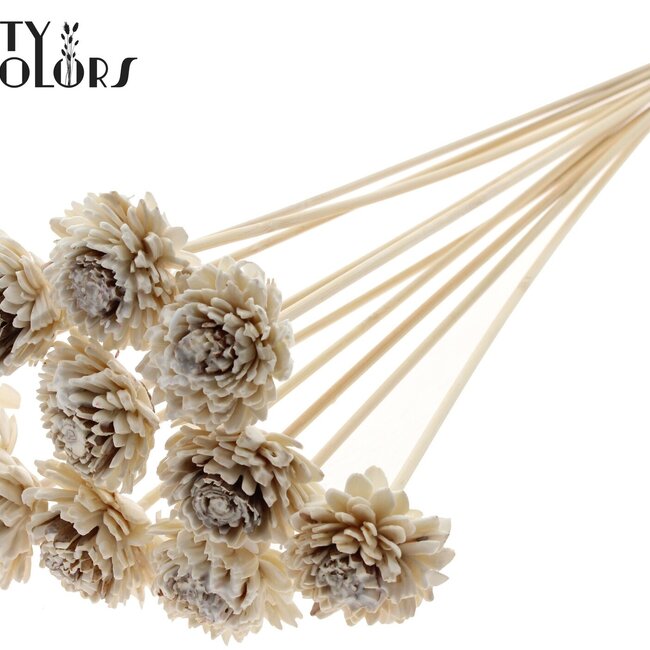 Een lichte, handgemaakte zinnia van shola-hout met een zachte waslaag die een natuurlijke, poederachtige wittoon geeft — perfect voor wie houdt van subtiele, onderhoudsarme bloemaccenten. Met een bloemdiameter van ongeveer 6 centimeter en een stoklengte van ±50 centimeter voelt hij verrassend realistisch aan en past hij moeiteloos in boeketten, vaasarrangementen of als losse bijsteker. De set wordt geleverd met 10 bijstekers per bos, waardoor je direct meerdere plekken in huis kunt opvrolijken zonder gedoe.