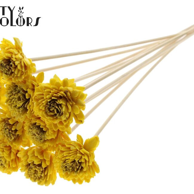 Vrolijke, natuurlijke uitstraling zonder gedoe: deze Shola Zinia bijsteker van QC combineert het zachte, houtachtige shola-materiaal met een subtiele waslaag voor een realistische textuur en diepe gele kleur. De bloem heeft een diameter van ongeveer 6 centimeter en zit op een bijsteker van ± 50 centimeter, geleverd per bos van 10 bijstekers — perfect voor iedereen die van kunstbloemen houdt maar wel die warme, handgemaakte charme wil. Als onderdeel van onze collectie Kunstbloemen en Shola Flowers past deze Zinia moeiteloos in allerlei combinaties; bekijk ook de Zinia collectie voor meer variatie: Zinia.