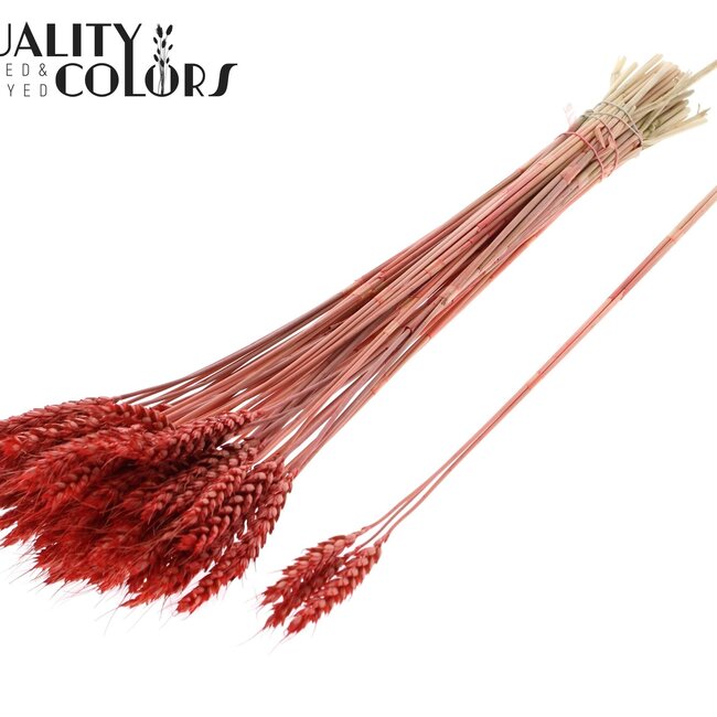 Deze koraalkleurige gedroogde tarwe geeft elk hoekje in huis meteen sfeer met zijn warme, natuurlijke tint en charmante textuur. Het bosje van QC bestaat uit toefjes met 3 takjes per toefje en 25 toefjes per bos, ideaal om los in een vaas te zetten of te mixen met andere favorieten uit de Droogbloemen-collectie. Binnen de categorieën Droogbloemen en Droogbloemen P - Z past dit Triticum perfect bij bijvoorbeeld gedroogde rozen of Helichrysum voor een vrolijke, duurzame styling; de kleur blijft lang mooi, vraagt geen onderhoud en maakt van elke ruimte een warm en blijvend plaatje.