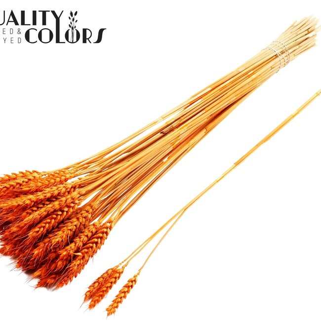 Deze warme oranje Triticum geeft je interieur meteen een natuurlijke, tijdloze touch zonder gedoe. Van het merk QC komt een stevige bos met ongeveer 25 toefjes per bos, elk toefje met 3 takjes en een lengte van circa 55 centimeter, perfect om een hoge vaas te vullen of meerdere kleine vaasjes mee te groeperen. Deze droogbloemen vallen onder Droogbloemen en Droogbloemen P - Z, specifiek in de categorie Triticum (Tarwe), en brengen een rustieke, zonnige sfeer in huis die lang blijft staan.