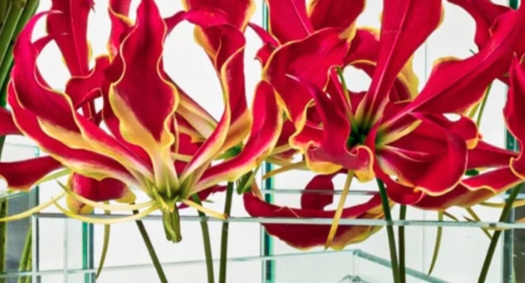 In het wild slingert de Gloriosa, nichtje van de leliefamilie, zich in India en zuidelijk Afrika omhoog. De officiële naam is Gloriosa rothschildiana, genoemd naar zoöloog Lionel Rothschild. De bloem wordt ook wel prachtlelie genoemd, met 'superba' als tweede naam. En daar is geen woord teveel van gezegd.