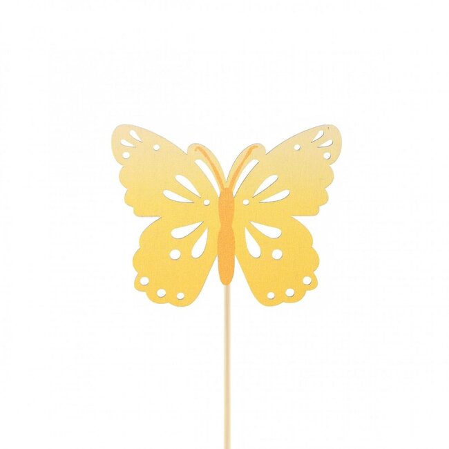 Vlinder Zazou Bijsteker | Kleur: Geel | Diameter 4 centimeter | Lengte bijsteker ± 10 centimeter | Per 25 bijstekers