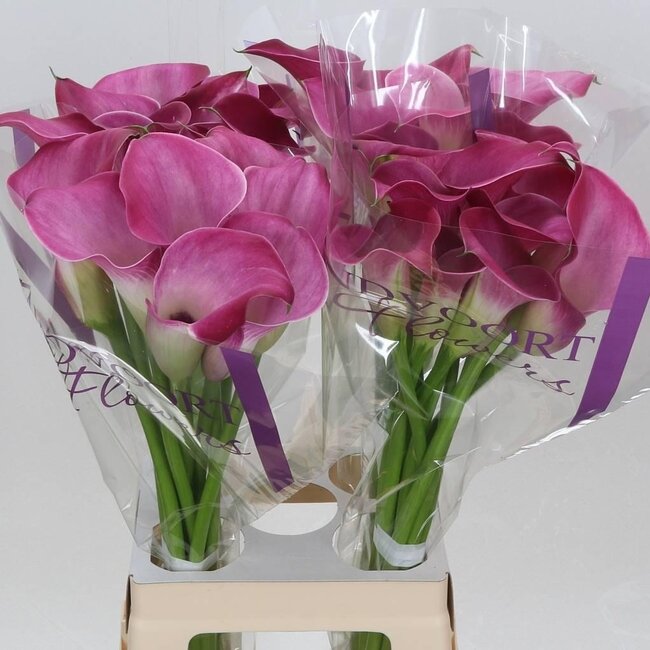 Deze elegante paarsgekleurde Calla, bekend als ‘Fantasia’, brengt meteen een moderne, sculpturale touch in huis met haar strakke lijnen en diepe kleurtonen; perfect om een vaas op tafel of een smal hoekje in huis direct op te frissen. De stelen worden per 10 geleverd en voelen stevig en vitaal aan, waardoor ze in een vaas lang hun vorm en kleur behouden en een stijlvolle, langdurige uitstraling geven — ideaal voor wie van onderhoudsarme, opvallende bloemen houdt. Je vindt deze parel tussen de Verse bloemen en in de sectie Verse bloemen P - Z, of bekijk meer onder Zantedeschia (Calla), en de bloem komt van Freshy voor een consistente kwaliteit die opvalt in elk interieur.